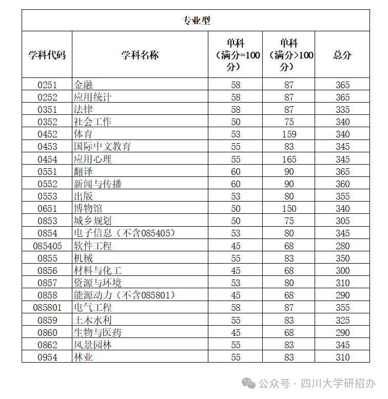 四川大学2025年硕士研究生招生考试考生进入复试的初试成绩基本要求