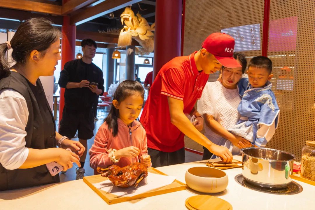 在加工端,甜皮鸭龙头企业凭借独特风味与创新经营,正引领着产业升级。在乐山甜皮鸭江湖中,能够让外地游客叫出名来的,纪六孃当属其中之一,该品牌打造的甜皮鸭品牌体验馆可以亲自感受甜皮鸭制作技艺,一年接待市民游客达数十万人次。赵鸭子则积极参与起草了“乐山味道·嘉州菜”地方标准,为乐山甜皮鸭的传承和发展做出贡献。