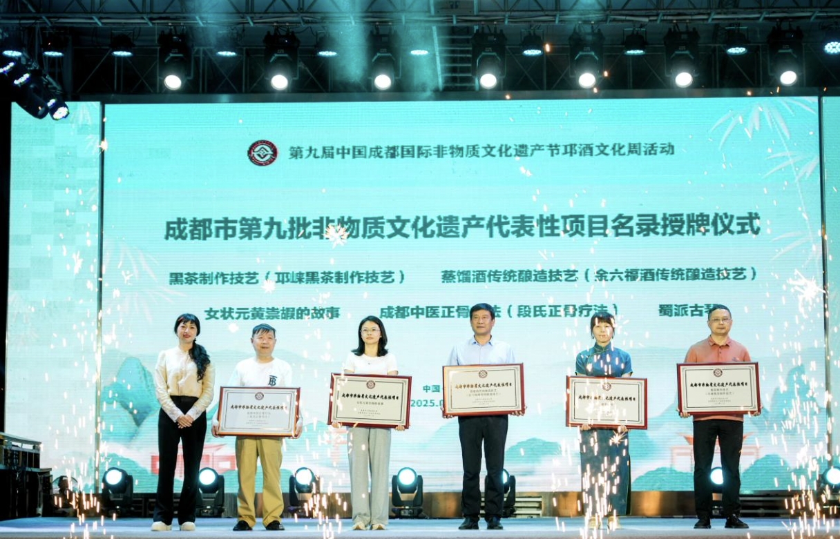 现场还为邛崃市5项入选成都市第九批非物质文化遗产代表性项目、四川省优秀非遗工坊、第八批省级非物质文化遗产代表性传承人授牌。