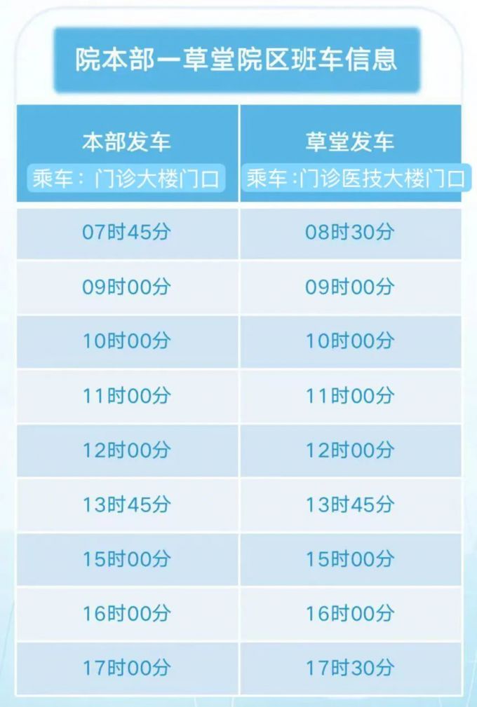 4.院本部与草堂院区之间有往返摆渡车,发车地点及发车时间如下表: