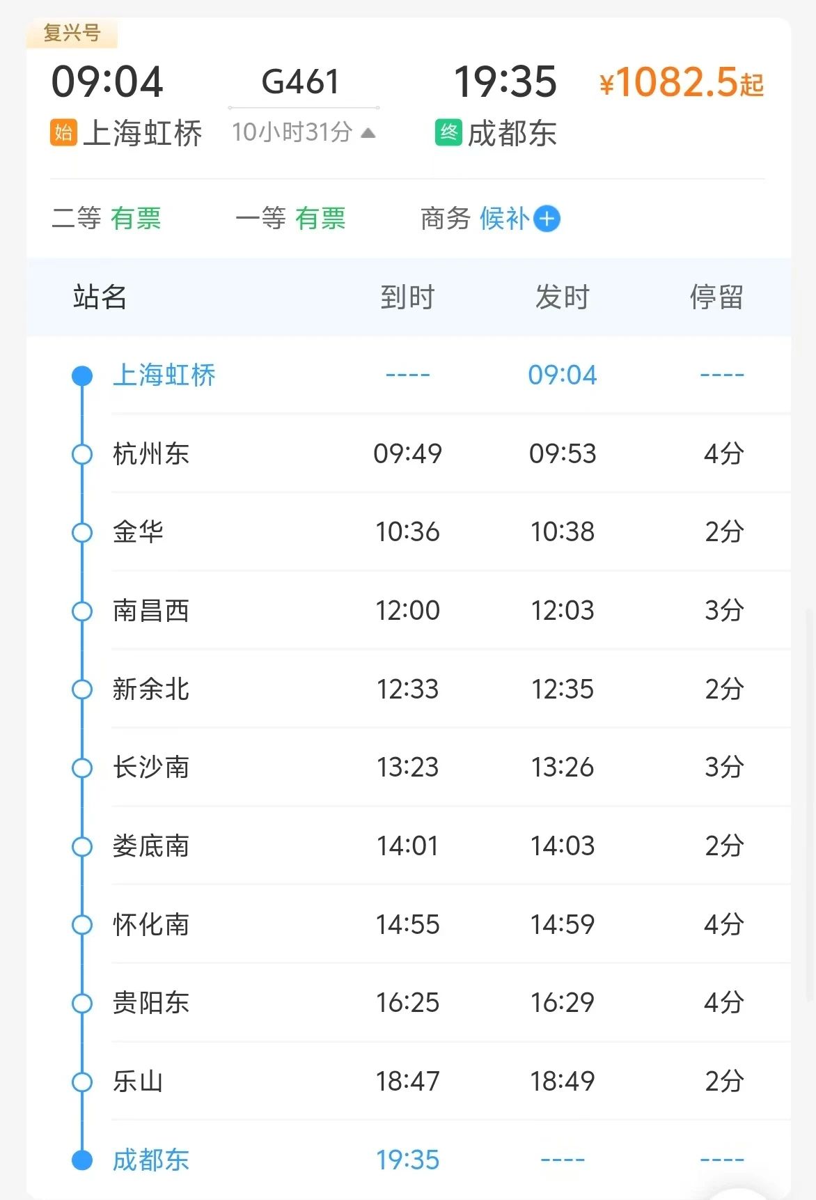 重庆西至上海虹桥