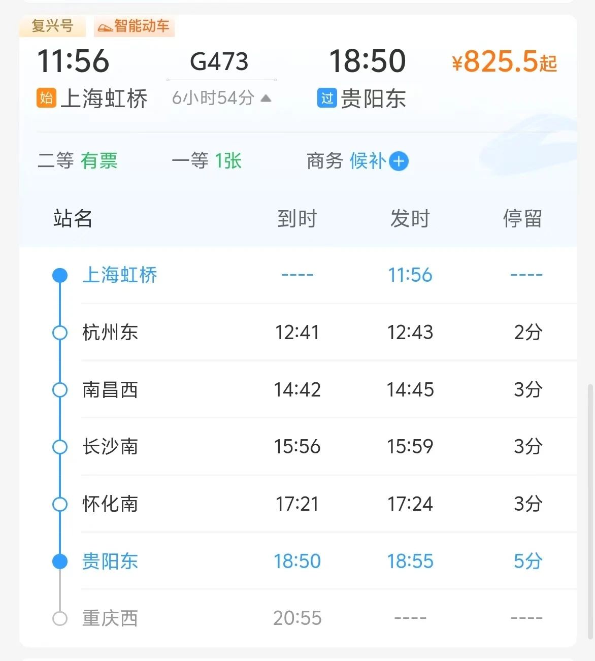 贵阳东至上海虹桥