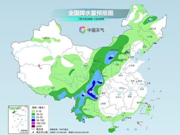 随着副热带高压控制黄淮到华南,位于副热带高压边缘的四川盆地、西北地区东部、华北、东北成为我国主要降雨区域。昨天,云南中西部、四川盆地西部、青海东北部、甘肃中部和东南部、陕西西南部、山西东南部、河北西部、辽宁东部和南部、吉林东南部及海南岛等地出现大到暴雨,四川盆地西部、辽东半岛出现大暴雨,四川绵阳、德阳、成都局地遭遇特大暴雨。