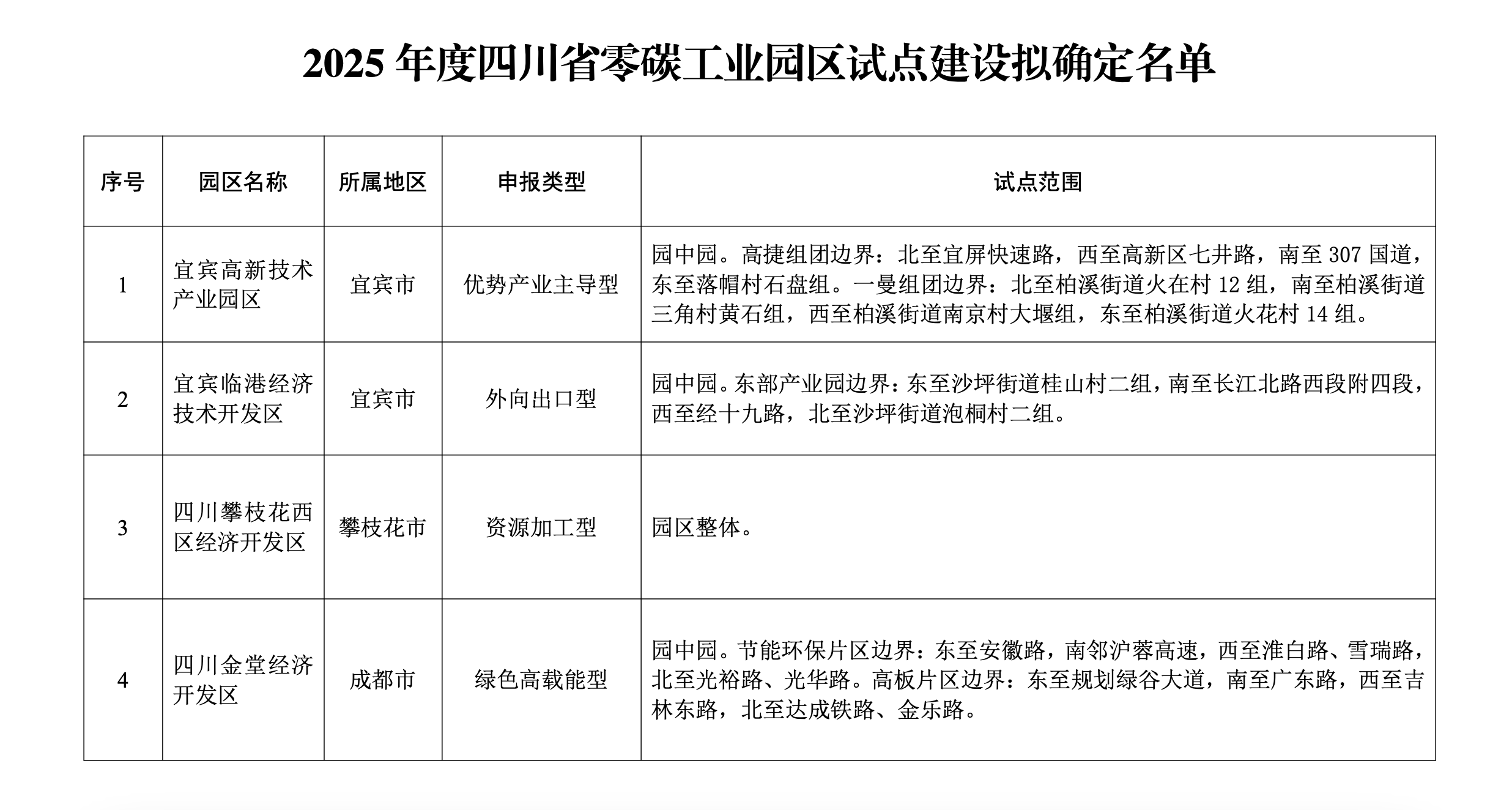 近日,四川省经济和信息化厅公示了《2025年度四川省零碳工业园区试点建设拟确定名单》,共4个园区上榜,分别是宜宾高新技术产业园区、宜宾临港经济技术开发区、四川攀枝花西区经济开发区、四川金堂经济开发区。公示时间:2025年7月3日—2025年7月9日,5个工作日。