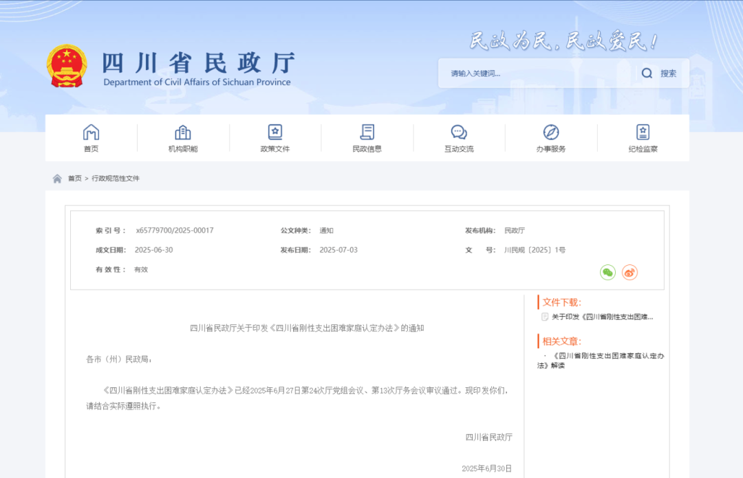 此外,《办法》规定,经审核认定为刚性支出困难家庭的,有效期一般不超过十二个月。在有效期内,刚性支出困难家庭按照规定获得相应社会救助或者帮扶。有效期满后,需要继续申请认定为刚性支出困难家庭的,应当按照本办法重新申请。