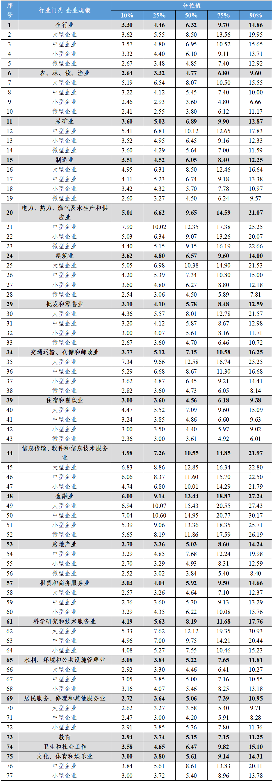(二)分行业门类不同企业规模的企业从业人员工资价位(2024年)