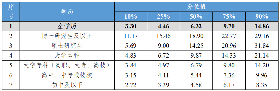 (三)分学历的企业从业人员工资价位(2024年)