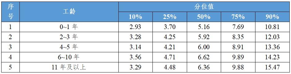 (五)分工龄的企业从业人员工资价位(2024年)