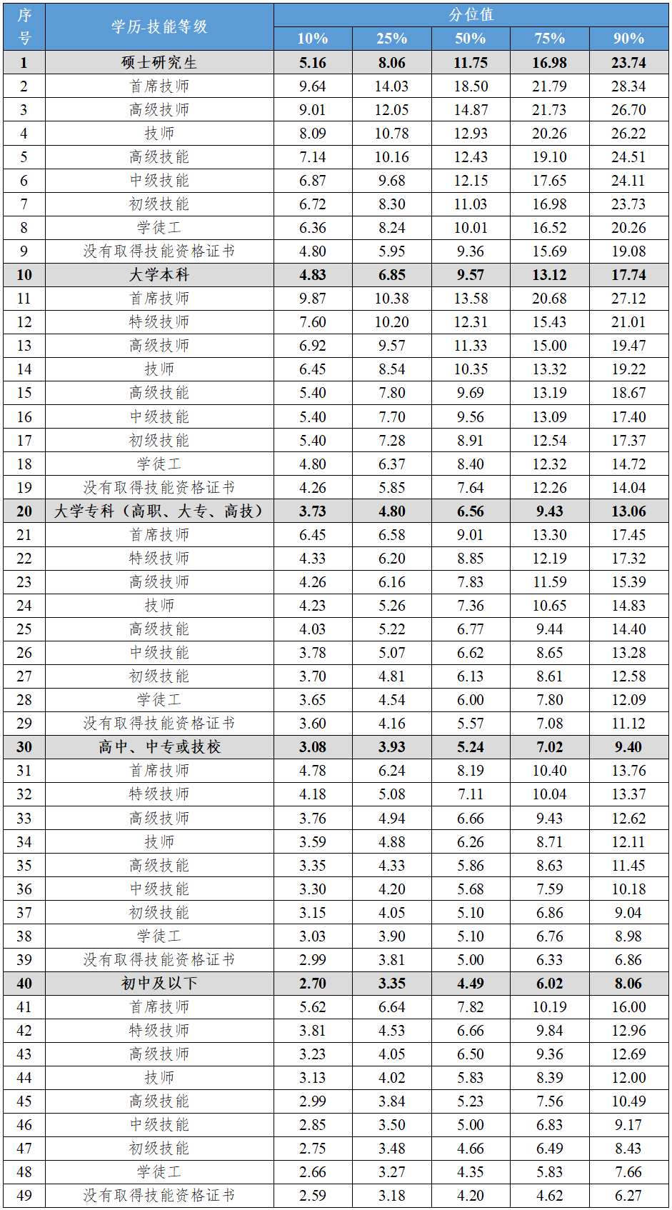 二、技能人才工资价位