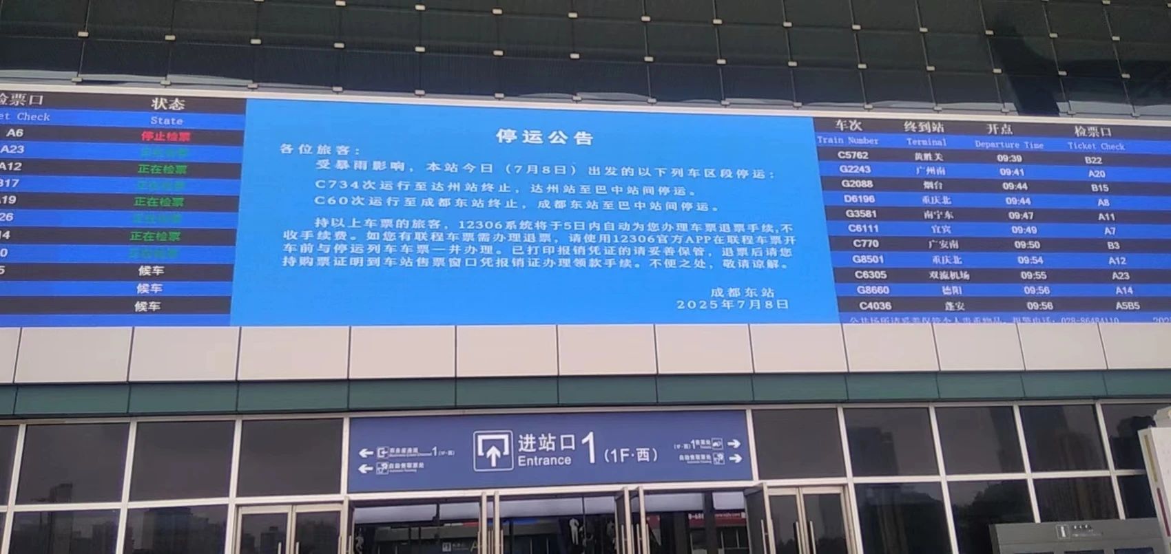 成都车站获悉