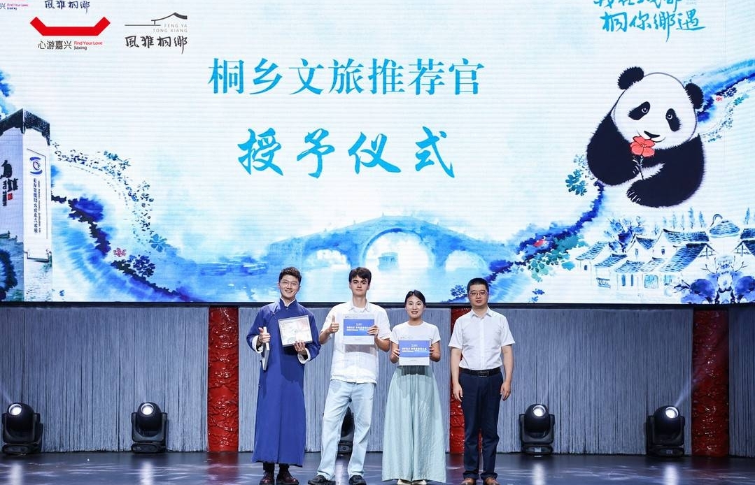 活动中,嘉兴市文旅推介官带来“中国古镇看嘉兴”主题推介,展现了嘉兴的人文之盛、灵韵之秀、休闲之乐、时尚之范、入夜之美等独特魅力。随后的“快板对话·风雅桐乡”中外情景秀,以清脆快板为媒,中外对话为引,生动串联起桐乡的赛事活力、名人足迹、非遗匠心、地道美食与时尚艺术,赢得满堂喝彩。重磅发布的“丰子恺带你游桐乡”主题线路视频,借由先生笔触,引领观众沉浸式“漫”游桐乡,深度诠释“子恺式”生活美学。为持续扩大“风雅桐乡”国际声量,是秋天的秋、雅各布、崔麒三位各领域翘楚被授予桐乡文旅推荐官称号。
