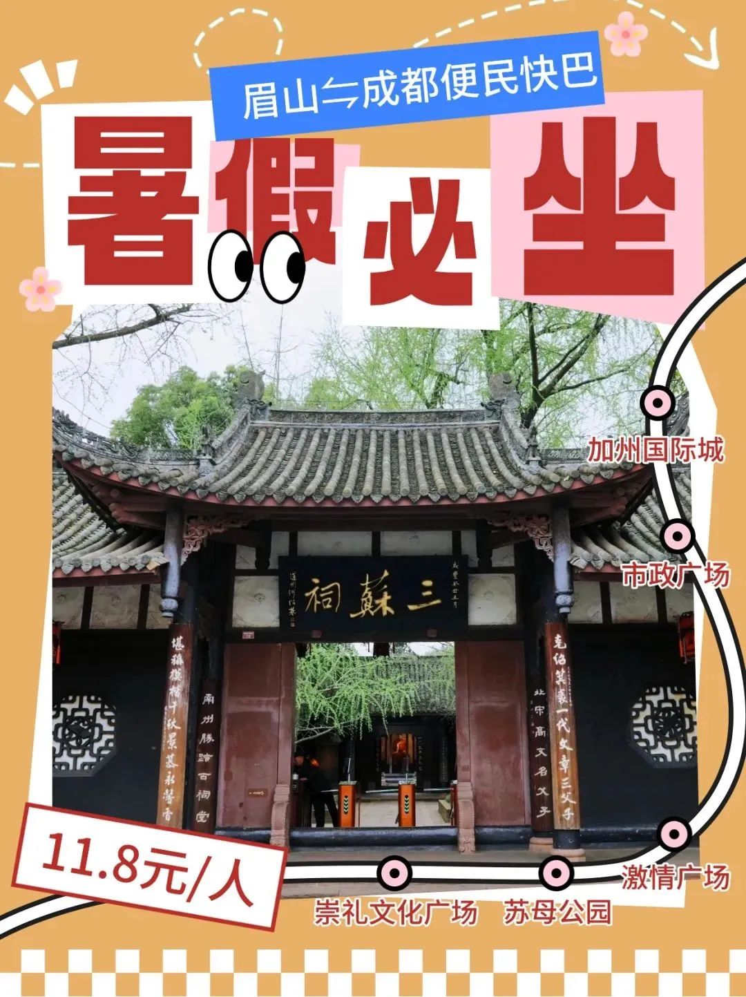 眉山上车点:崇礼文化广场站→苏母公园站→激情广场站→市政府站→加州国际城站