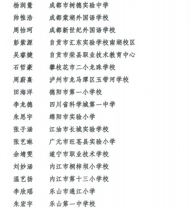 2025年四川省“新时代好少年”名单