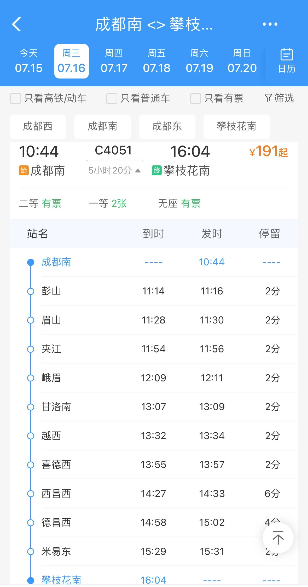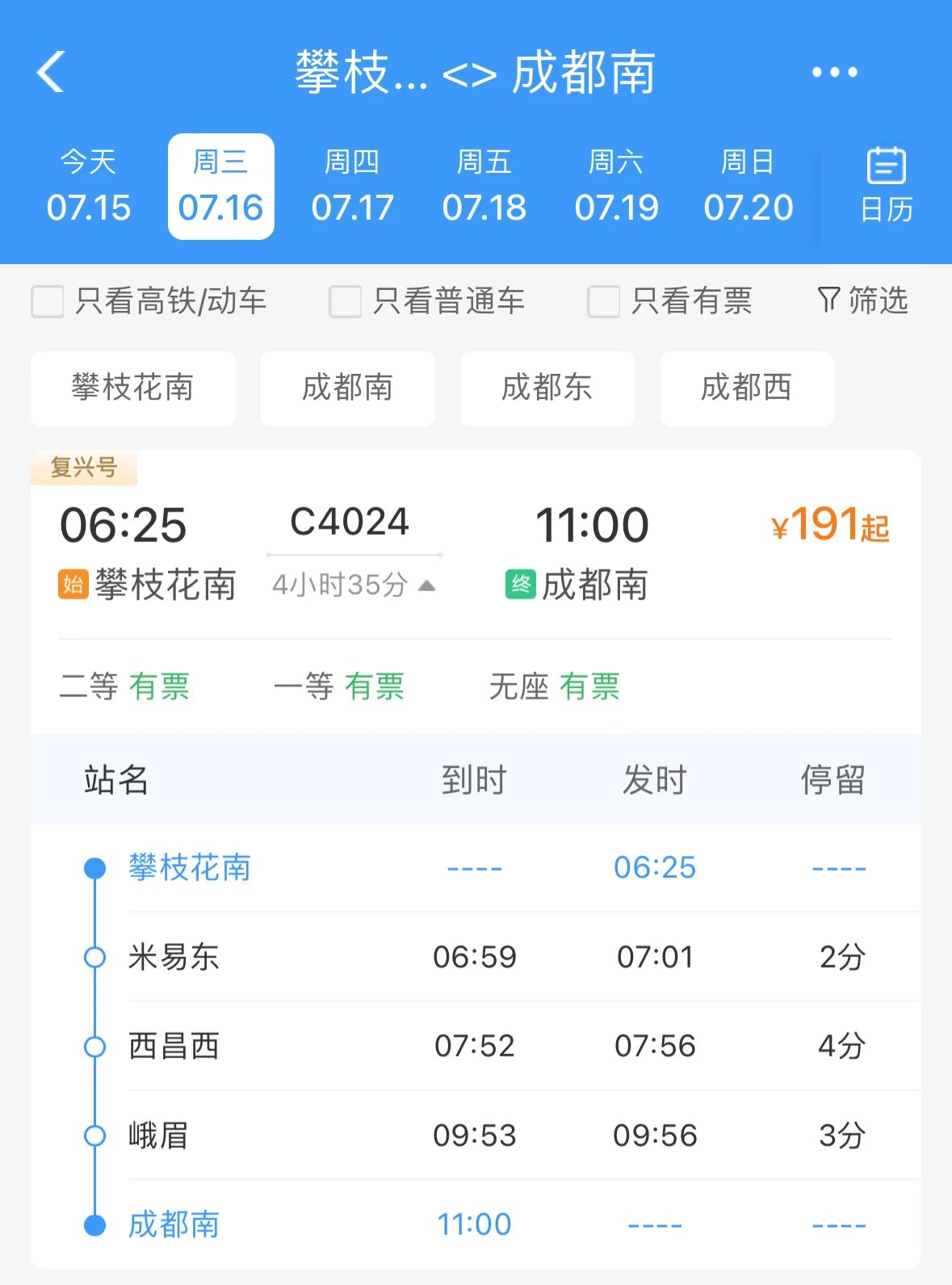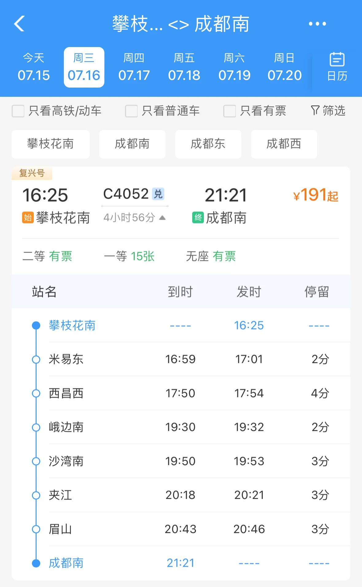 成都西至攀枝花南
