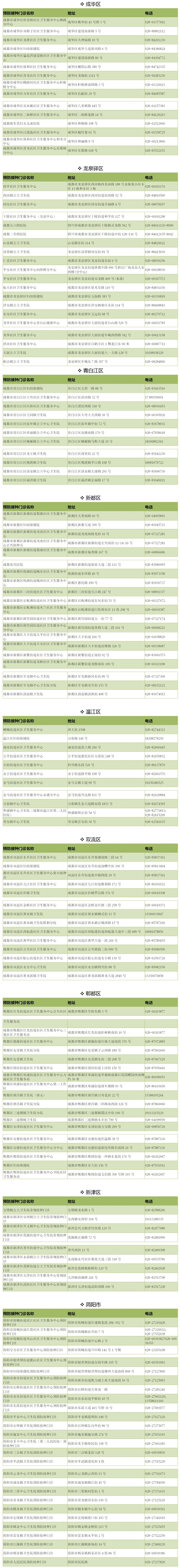 据悉,该信息为截至2025年7月的相关信息。市民后续若遇到预防接种门诊搬迁、电话变更等情况,可咨询辖区疾控中心或者通过“成都疾控”微信公众号首页的疾控查--接种预约和查询版块进行实时查询。