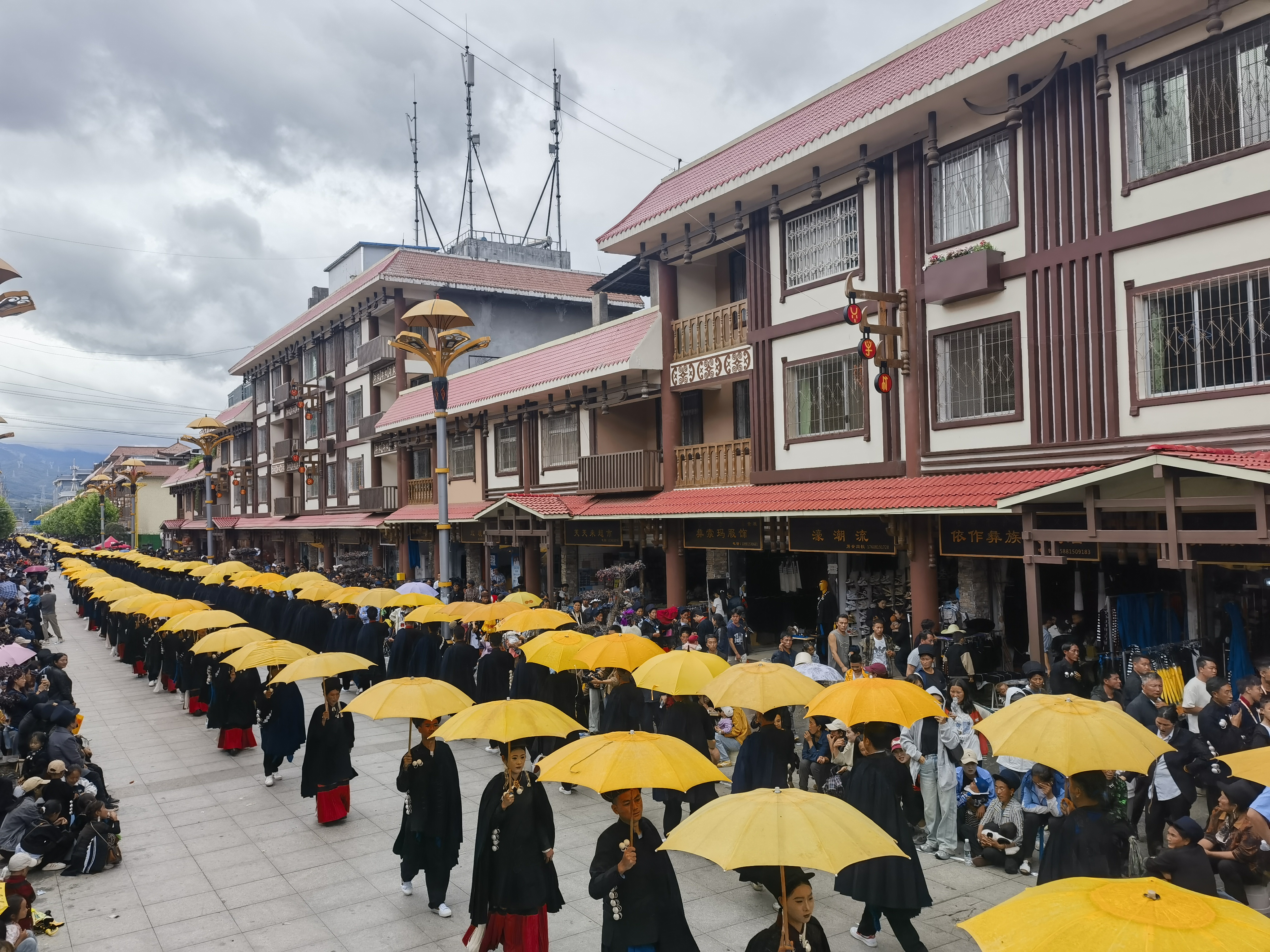 阿都高定银饰与服饰展演则带来一场视觉的奢华洗礼。大街上,身着缀满錾花银泡、银领牌、银链的节日盛装款款而行。银铃清脆,银光流淌,每一件精工细作的银饰都在诉说着布拖工匠的千年智慧与极致审美。