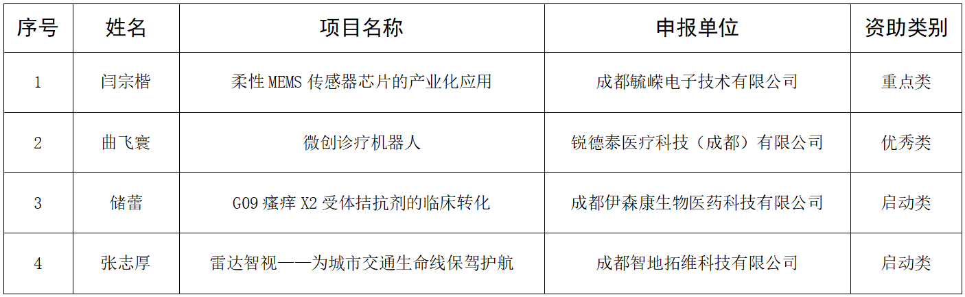 (二)2025年度四川省留学人员回国创业启动支持计划拟资助项目