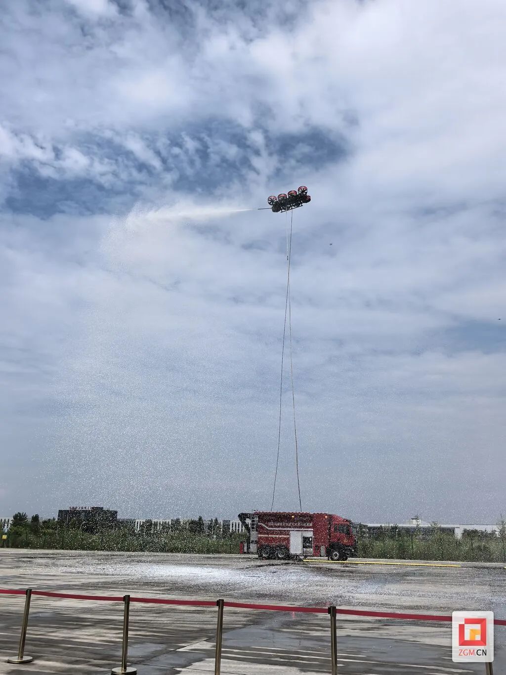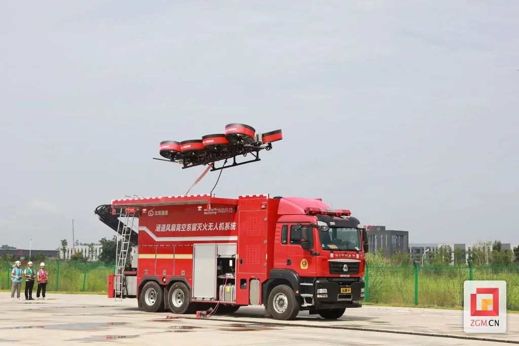 四川发布客户端消息 日前,全球首创的新型消防灭火无人机──涵道风扇高空系留灭火无人机系统在四川自贡亮相,该系统可有效解决城市高层建筑灭火难题。本次发布的无人机系统,融合了低空消防无人机和消防车两者的核心优势,消防车整车长度不超过10米,宽度不超过2.5米,接警后能第一时间到达失火楼宇现场,无需展开救援支撑面就能即时作战,与消防车相连接的无人机在一分钟内可以升至100米高空进行灭火作业。据悉,此前该设备已在自贡实地测试超过半年时间,预计到年底可以走向救援一线。