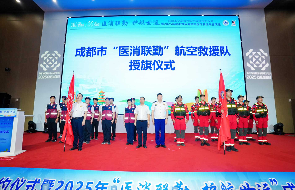 四川发布客户端消息 7月24日,“医消联勤、护航世运”成都市突发事件航空救援签约仪式暨2025年成都世运会航空医疗救援联合演练在成都市急救指挥中心举行。此次活动由成都世运会执委会保障部、成都市卫健委、成都市消防救援支队联合主办。