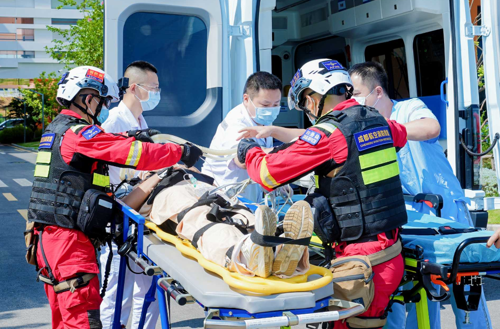 签约仪式结束后,由成都世运会执委会保障部、成都市卫健委、成都市消防救援支队联合主办的“2025年‘医消联勤·护航世运’成都世运会航空医疗救援联合演练”正式展开,演练模拟突发事件造成多人受伤场景,因交通拥堵地面救援力量无法到达现场,立即启动航空救援。此次演练重点检验陆空立体接驳、医消联合指挥、跨部门数据互通及大型赛事应急处突四大能力。通过实战化、全要素演练,切实提升2025年第12届世界运动会应急综合保障能力,强化医消联勤航空救援实战能力,形成一套可复制的大型赛事医疗保障“成都方案”。