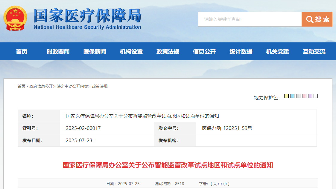 四川发布客户端消息 近日,国家医疗保障局办公室发布通知,公布智能监管改革试点地区和试点单位。