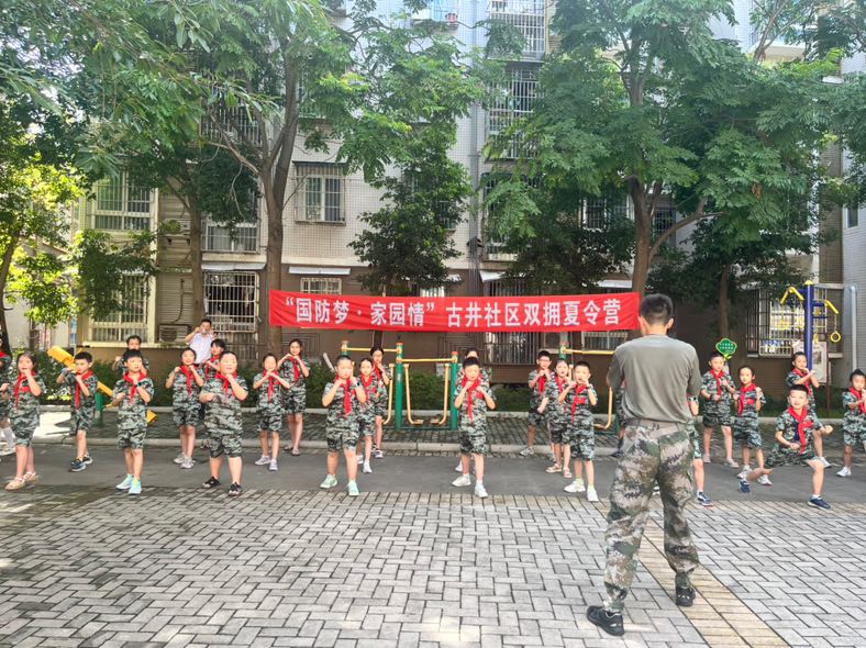 “出拳、劈、砍,注意动作!”在上马社区的无人驾驶公交车为退役军人服务的同时,涪城区石塘街道古井社区的双拥夏令营里,部队官兵正带领社区40个孩子进行国防教育训练,一招一式的军体拳打地有模有样。在体训结束后,孩子们回到室内,退役军人志愿者则用红色故事点燃大家的爱国热情,让爱国主义精神在孩子们心中生根发芽。