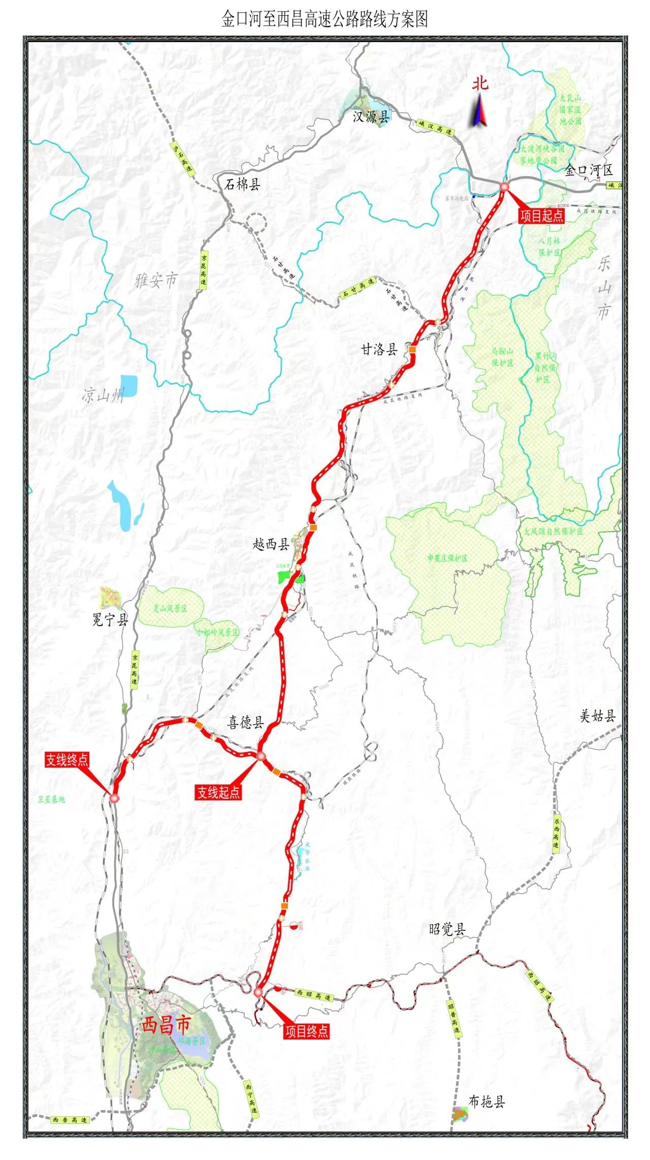 金口河至西昌高速公路是“织密三州网”路网填白提质行动重点项目,主线起于凉山州甘洛县乌史大桥镇,接已建成的峨眉至汉源高速公路,经越西县、喜德县,止于西昌市川兴镇,接在建的G7611昭通至西昌高速公路,长约173公里;同步设置38公里泸沽支线,接已建成的G5雅安至西昌高速公路。项目全长211公里,总投资约497亿元。全线采用双向4车道高速公路技术标准,设计速度80公里/小时,建设工期6年。