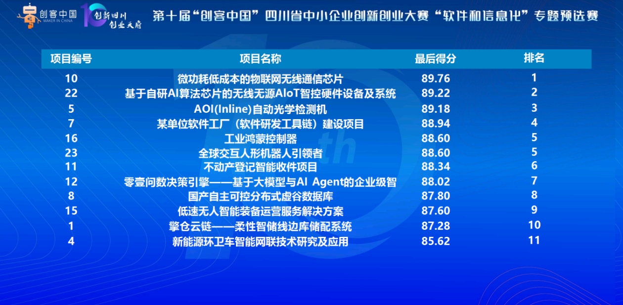 从项目质量维度观察,本次参赛项目整体呈现出较强的核心竞争力:部分项目拥有自主研发专利,技术壁垒突出;多家企业已完成多轮融资,获得资本市场的高度认可;另有项目通过头部客户的场景验证,商业化落地路径明确。这些项目的涌现,充分展现了四川省软件和信息化产业的创新活力。