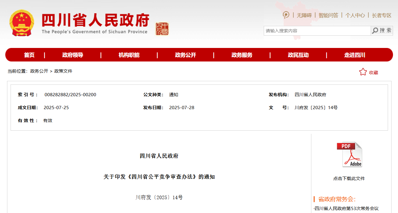 四川发布客户端消息 为确保各类经营主体机会平等、公平进入、有序竞争,持续优化全省营商环境。日前,四川省人民政府印发《四川省公平竞争审查办法》(以下简称《办法》),自2025年8月1日起施行。