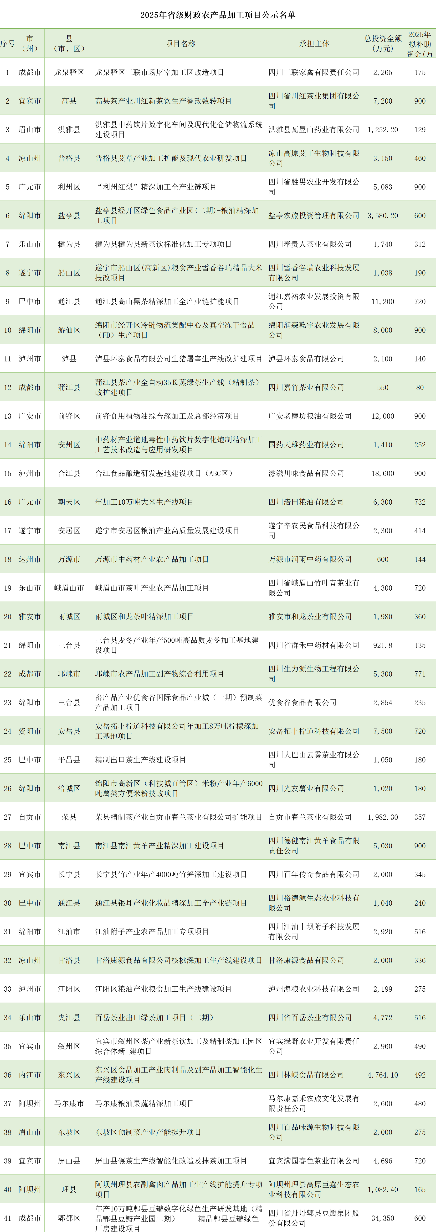 日前,四川省农业农村厅公示2025年省级财政农产品加工项目名单,共在全省遴选出75个省级财政拟支持的农产品加工项目。都有哪些项目?拟补助资金多少?