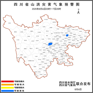 四川发布客户端消息 8月6日17时,四川省水利厅、四川省气象局联合发布山洪灾害蓝色预警。