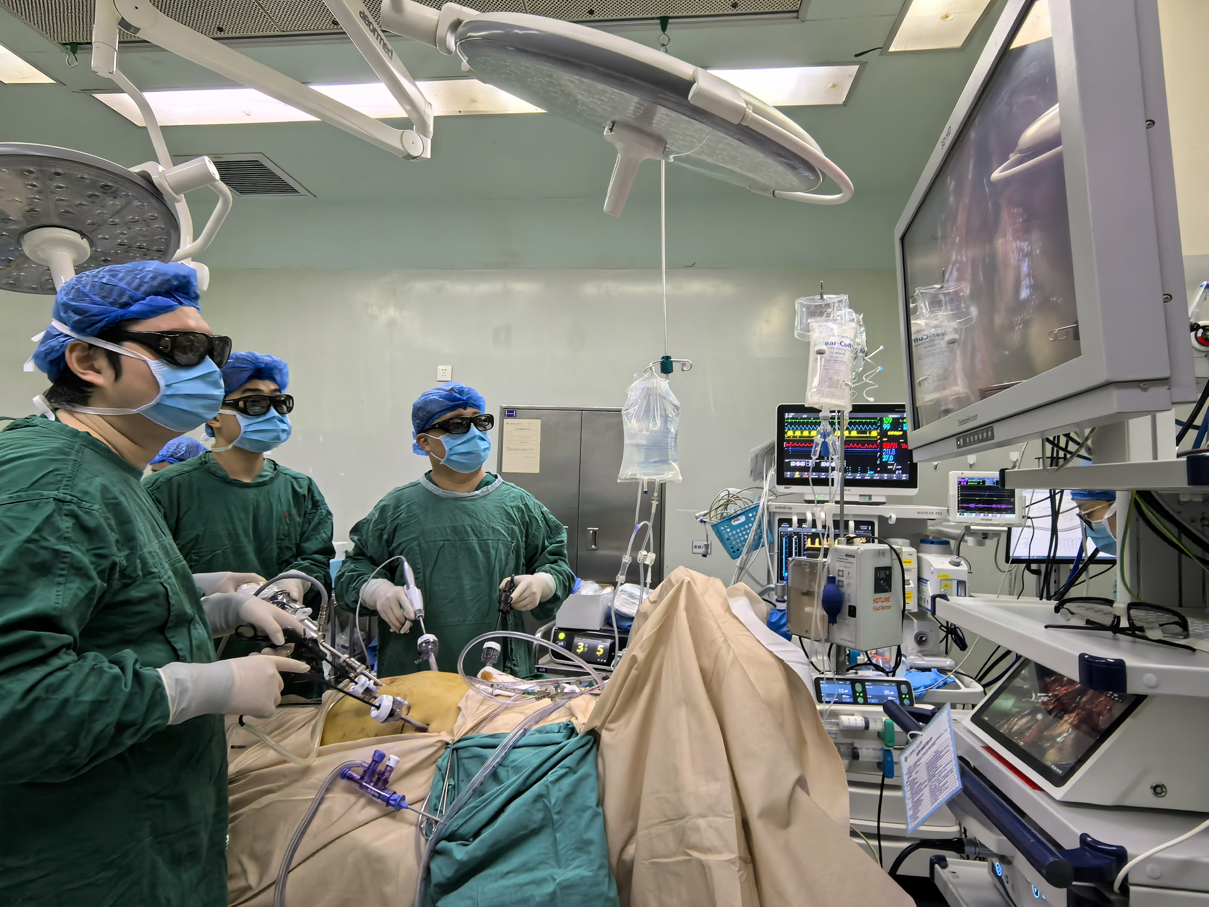 面对这样复杂罕见的生死考验,张宇团队决定在3D腹腔镜放大视野下,通过毫米级精密操作进行手术,整个手术持续了五、六个小时,术中出血量不多,也没有输血。最终,这场与“镜面”器官搏斗的手术顺利完成。术后,患者恢复顺利,黄疸稳步消退。