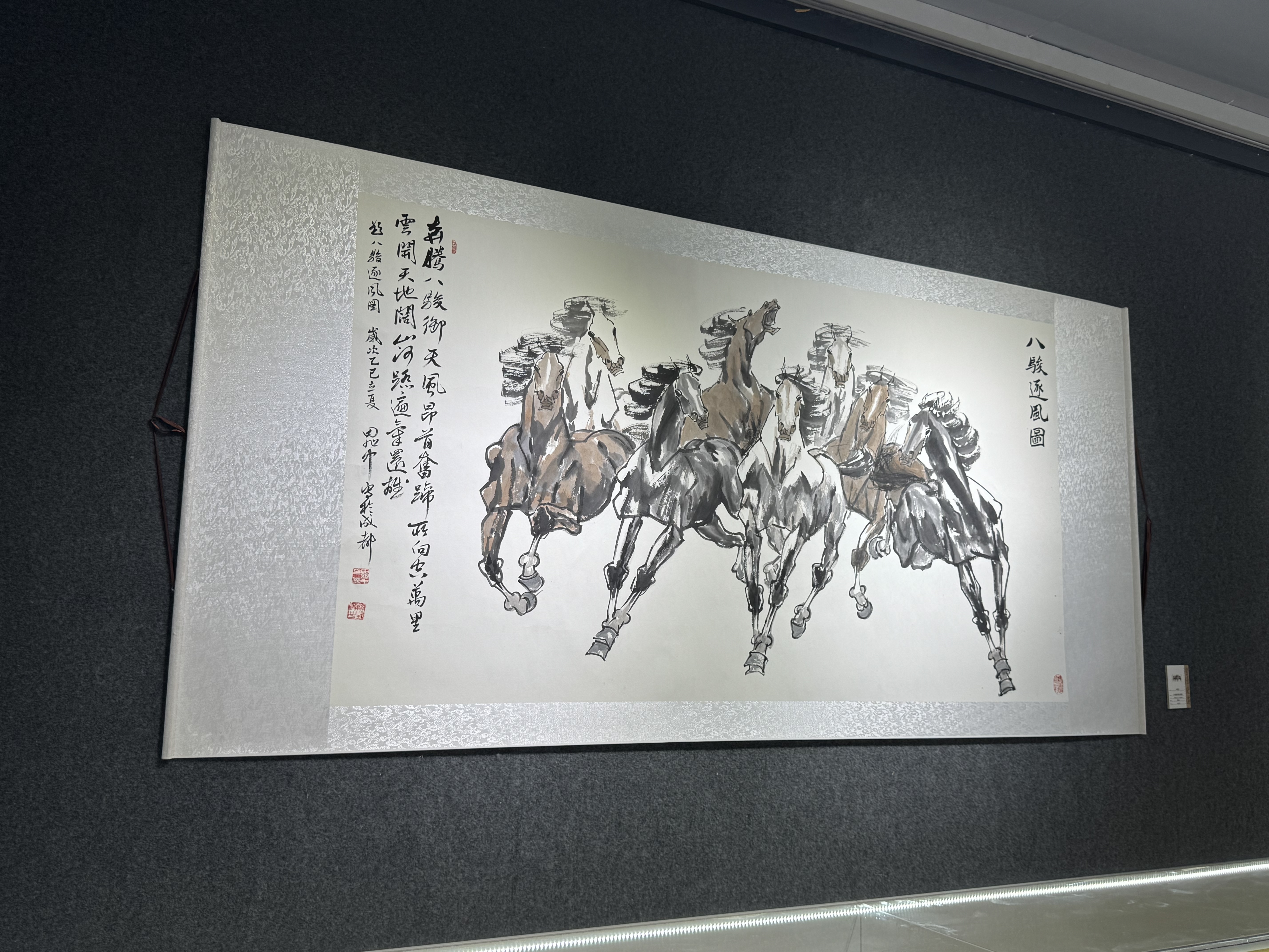 田旭中还特别推荐了其68米的长卷作品《后疫情时代/辛丑夏大型人物速写长卷》。这幅画以钢笔速写融合现代视角,成为了见证时代的珍贵艺术档案。另外,他还介绍了其水墨骏马图,“马有三大品质,吃苦耐劳、认准目标勇往直前、潇洒漂亮。”而这些品质也一如既往激励着田旭中,“未来到82岁,到92岁,我也将勇往直前。”