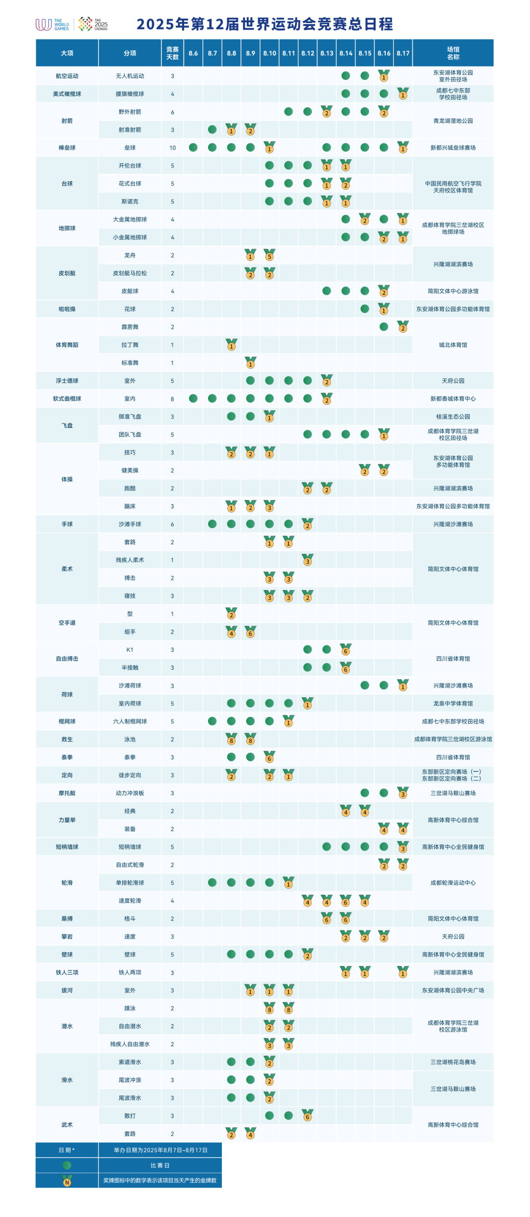 成都世运会竞赛总日程