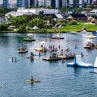 在麓湖inwave音浪水上乐园,水上飞人项目能让你借着水流腾空,像世运会选手般感受 “贴水飞行”的快感。