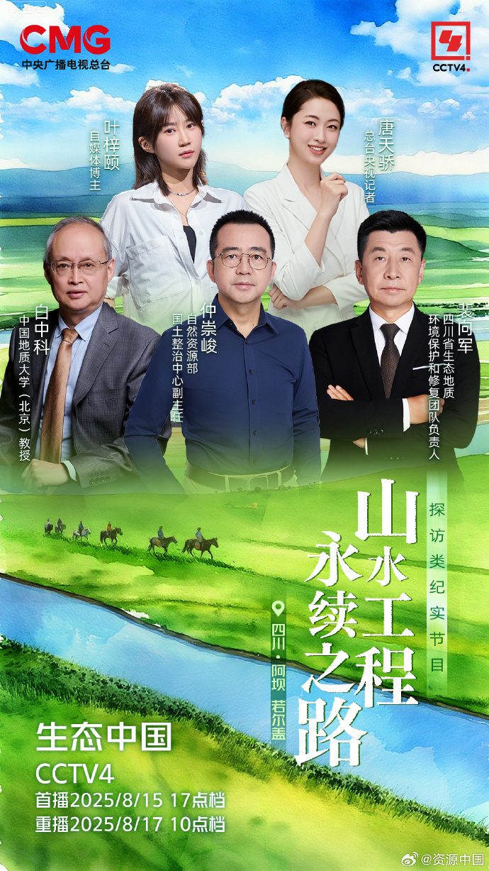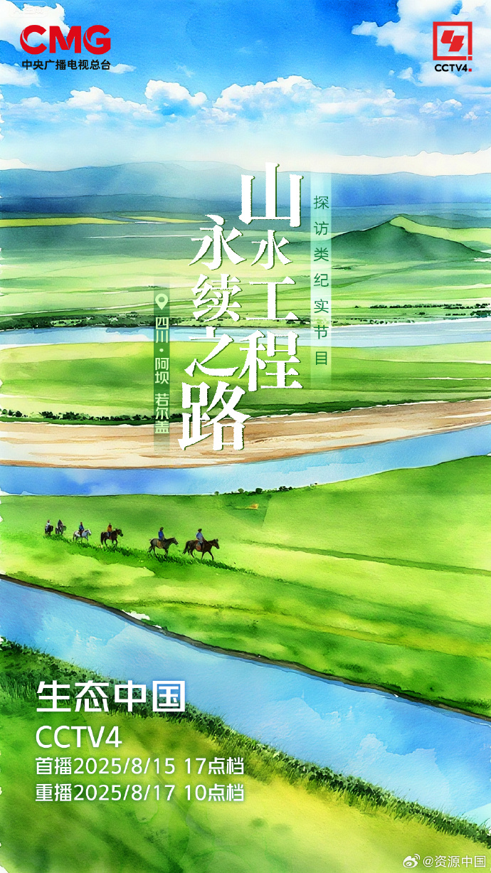 8月15日17:00,CCTV-4生态中国2025第五期──《山水工程 永续之路》,去川西草原看这片让黄河永远年轻的沃土新生。
