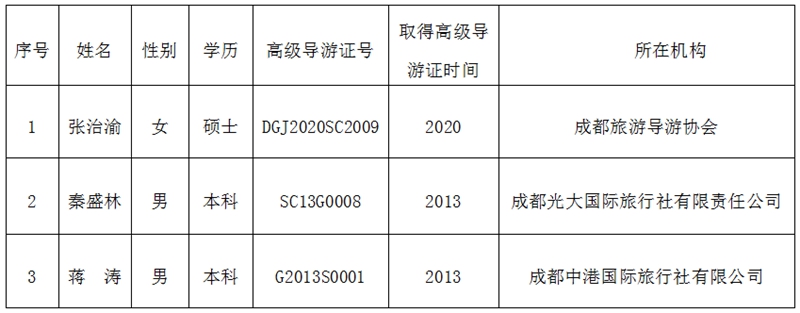 8月18日,四川省文化和旅游厅公示2025年四川省全国特级导游考评拟推荐名单,公示期为5个工作日(2025年8月18日至8月22日)。