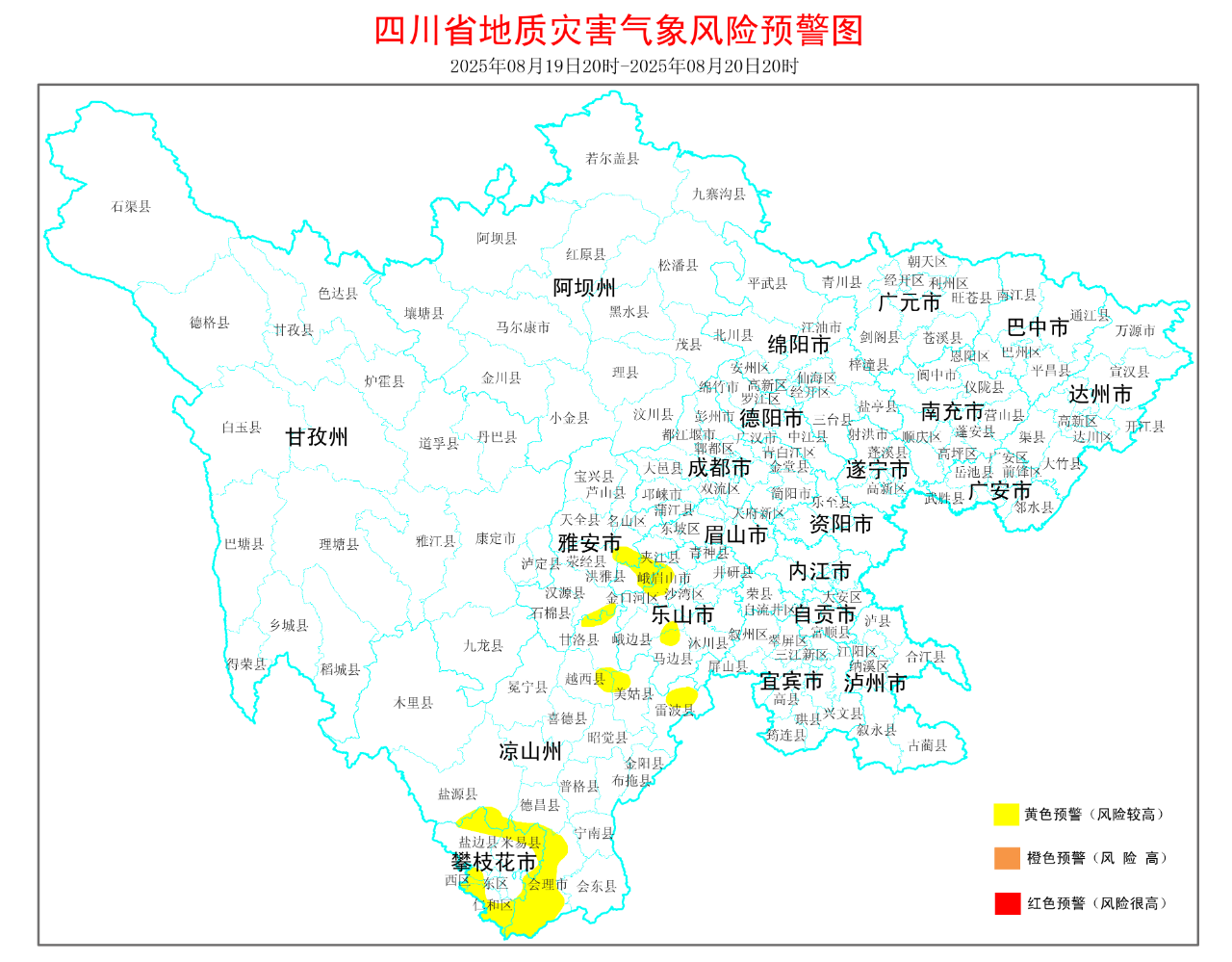 凉山州:会理市、盐源县、德昌县、越西县、甘洛县、美姑县、雷波县