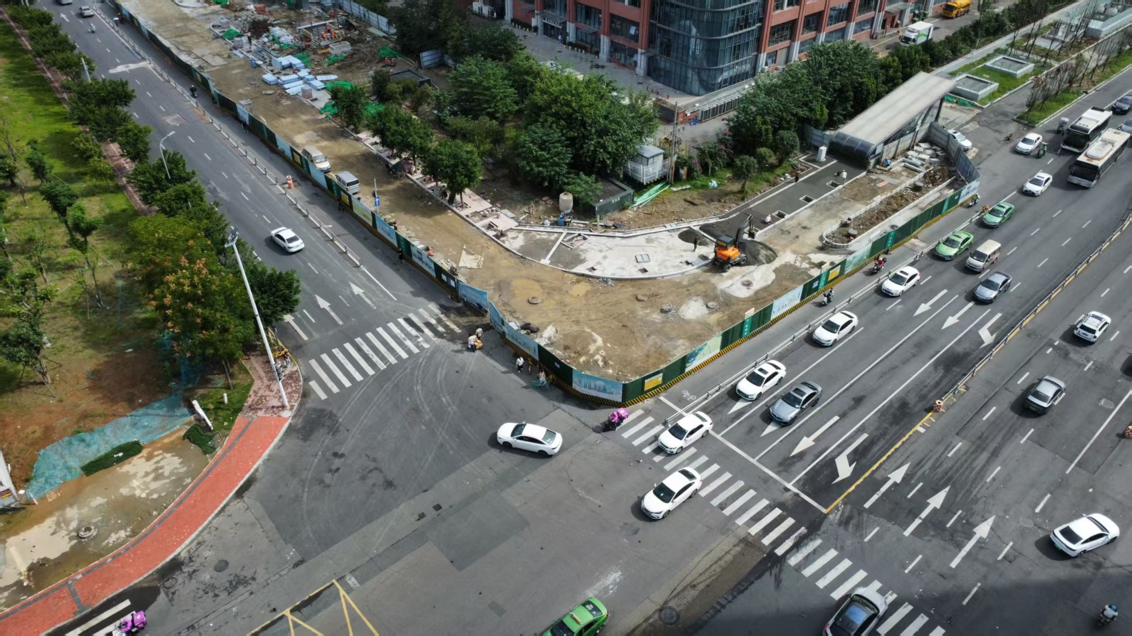 现场可以看到,从地铁5号线市一医院站C1口出站,府城大道西段和万象北路交叉十字路口处及万象北路东侧部分原有围挡已被拆除,新铺的沥青路面清晰划设了斑马线。“前期,为最大限度降低对市民出行的影响,方便就医人员和周边居民的快速通达,我们将万象北路四条机动车道改为单向通行,快速分流就医人群和通行车流。”成都轨道建设公司工作人员纪殿军介绍。
