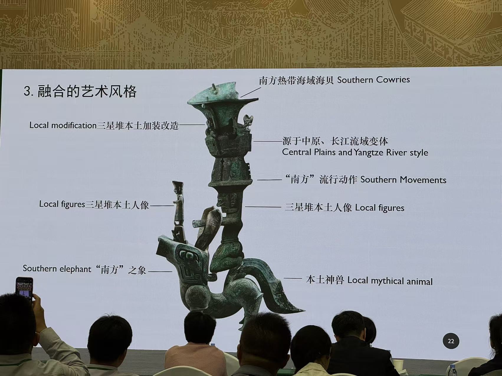 “以往我们常强调三星堆的神秘和封闭,但从互动网络的视角看,它表现出很强的开放性和交换性。”黎海超总结道。他以一件融合了长江流域风格尊和南方“大象”元素的本土风格青铜器为例,指出三星堆具有强大的文化融合与创新能力,能将来自四方的文化因素重构为独一无二的“三星堆风格”。