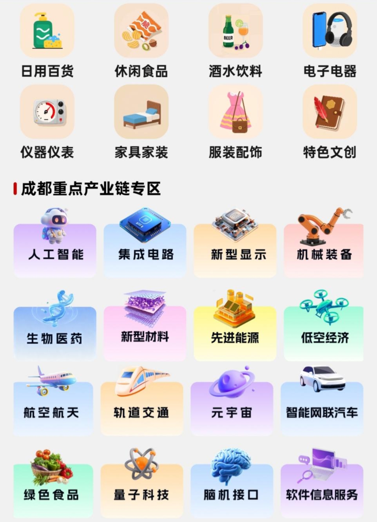 “成工精销 工业淘宝”创新实现“边看边买、边展边销”的展销一体模式。汇集“成都造”工业产品,包括食品酒饮、电子电器、家具家装等消费名品,以及人工智能、新型材料、集成电路等重点产业链产品,针对大型集采需求,平台创新推出“云上会客厅”功能,支持采购商与供应商在线洽谈、定价、签约,省去信息筛选与分批商洽时间,大幅缩短采购周期。