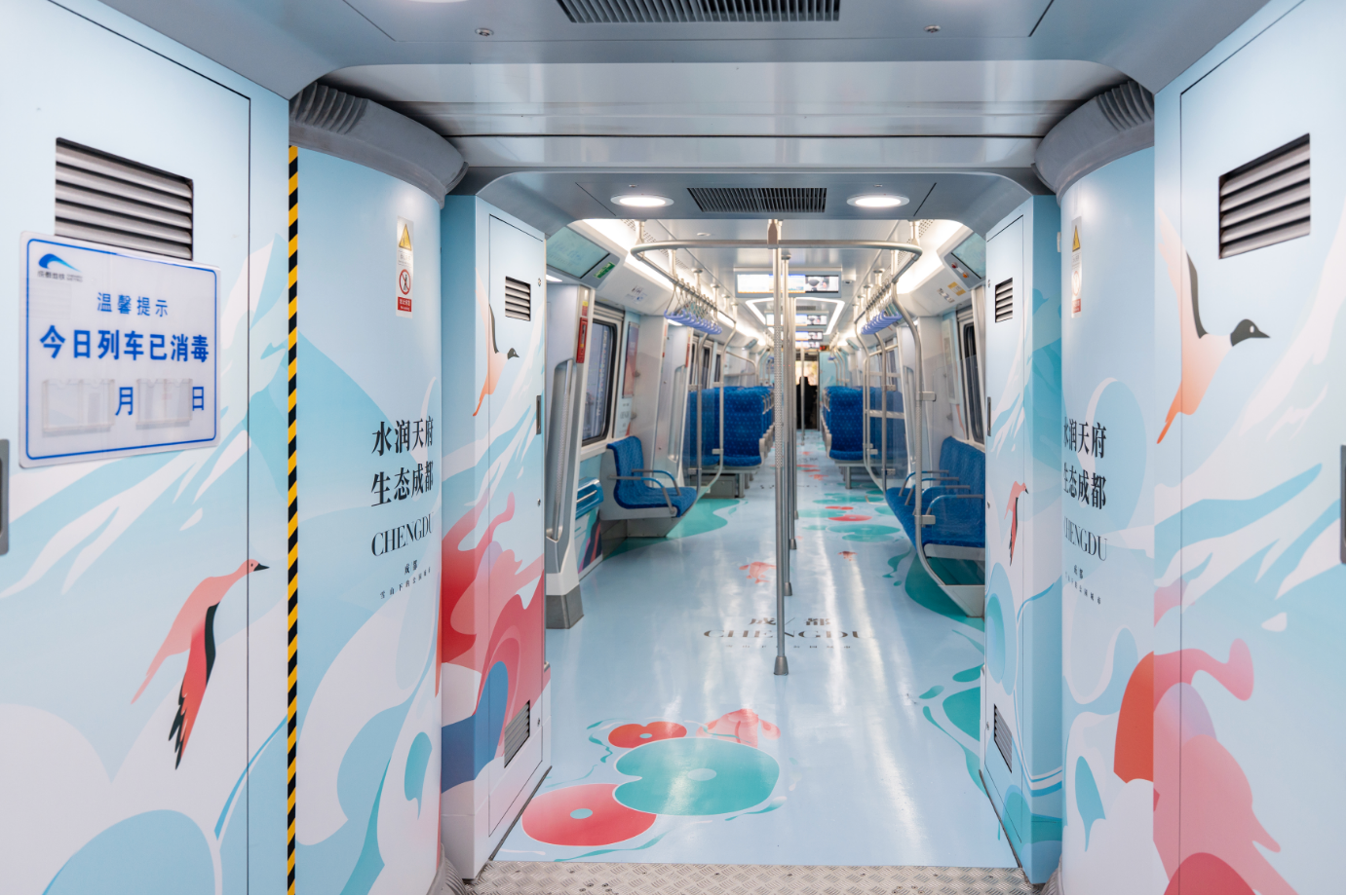 同日上线的还有成都地铁19号线“水润天府 生态成都”主题列车。列车以清新生动的“天府色调”为视觉基调,将鱼凫文化、都江堰水利工程、锦江春色、龙泉山森林公园、兴隆湖湿地等成都三千年水文化脉络与当代公园城市景观融于一体,形成一幅“流动的山水画卷”。19号线作为连接双流与天府机场的线路,该列车也将成为面向游客展示成都生态文化的一扇窗口。
