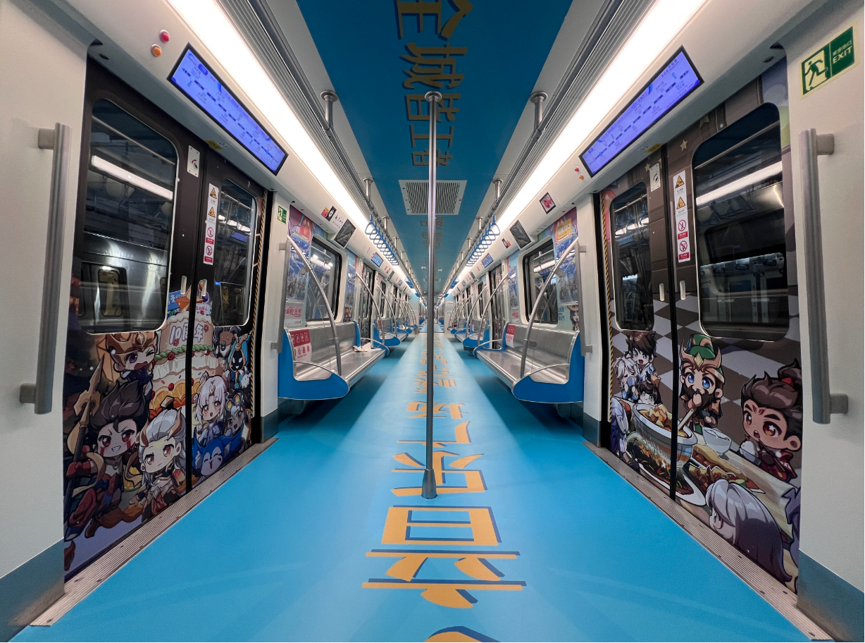 成都地铁在1号线上线“王者荣耀”主题专列。步入车厢,不仅能看到超人气英雄的酷炫形象,还能发现专为十周年设计的生日蛋糕、纪念图标等彩蛋元素。乘客们乘坐地铁,还能抵达交子大道、春熙路-太古里、东郊记忆等“跟着王者游成都”漫游线路的核心地标。