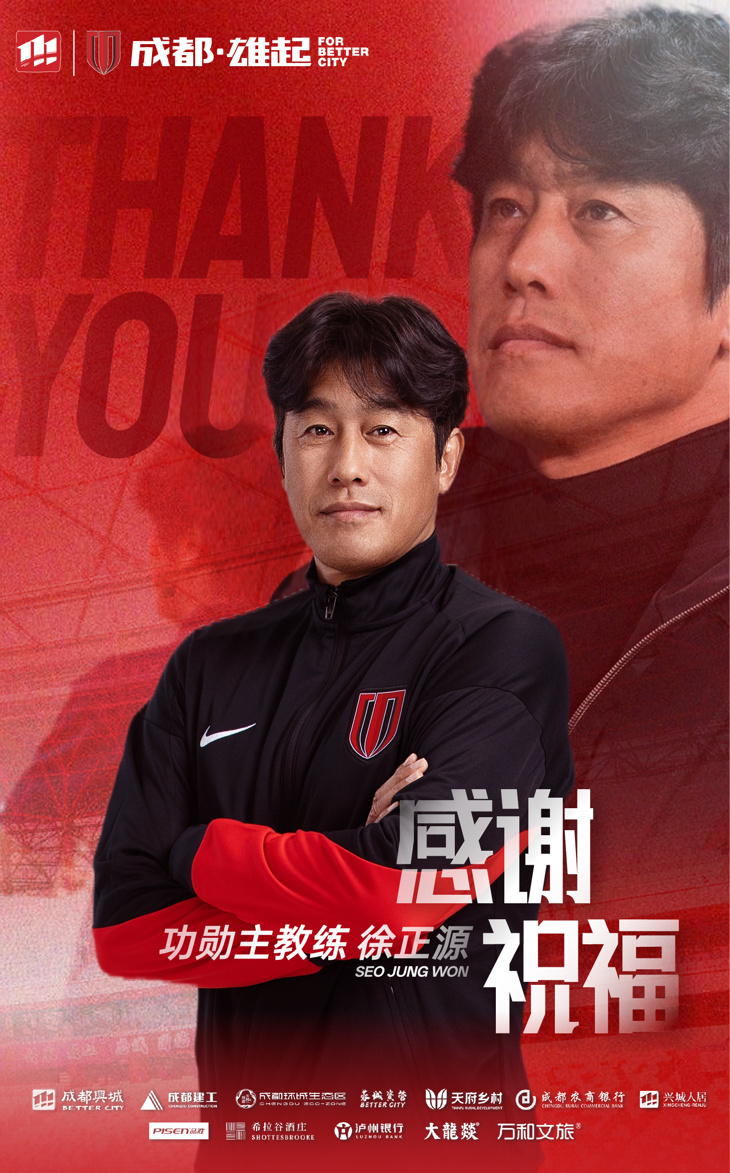 聚散有时,情义长存。徐正源先生永远是成都蓉城大家庭中备受尊敬的重要成员,成都蓉城足球俱乐部全体成员再次向徐正源先生致以最衷心的感谢与最美好的祝福!