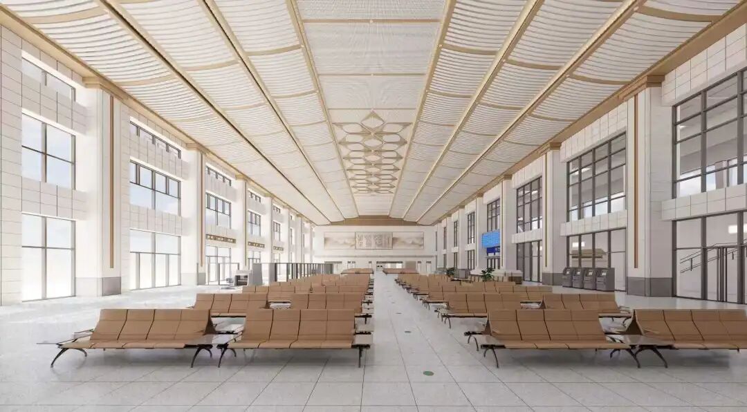 据介绍,高县站站房按照满足县域中长期旅客出行需求标准设计,站房位于站场的一侧且站房首层地面标高低于站台面,为线侧下式站型,设置旅客站台2座、到发线4条,可满足最高聚集人数600人,并预留无障碍候车区域,能充分应对节假日等客流高峰。