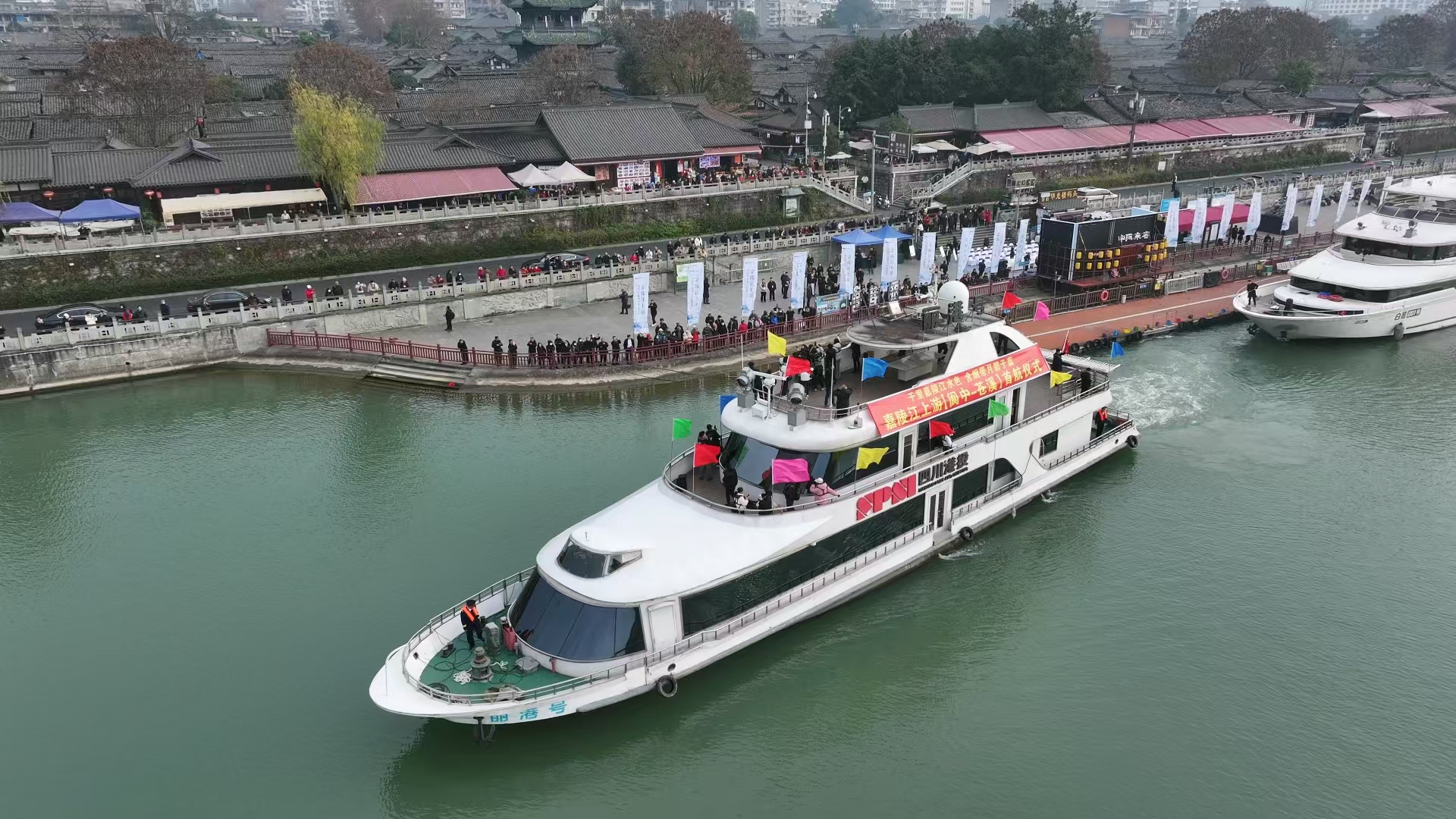 四川发布客户端消息 2025年12月29日,嘉陵江上游“阆中-苍溪”水上航线首航仪式在阆中水城华光楼码头举行。上午9时30分,随着“丽港号”游轮在悠长的汽笛声中缓缓离岸,标志着这条联通阆中、苍溪两地的水上新通道正式投入运营。