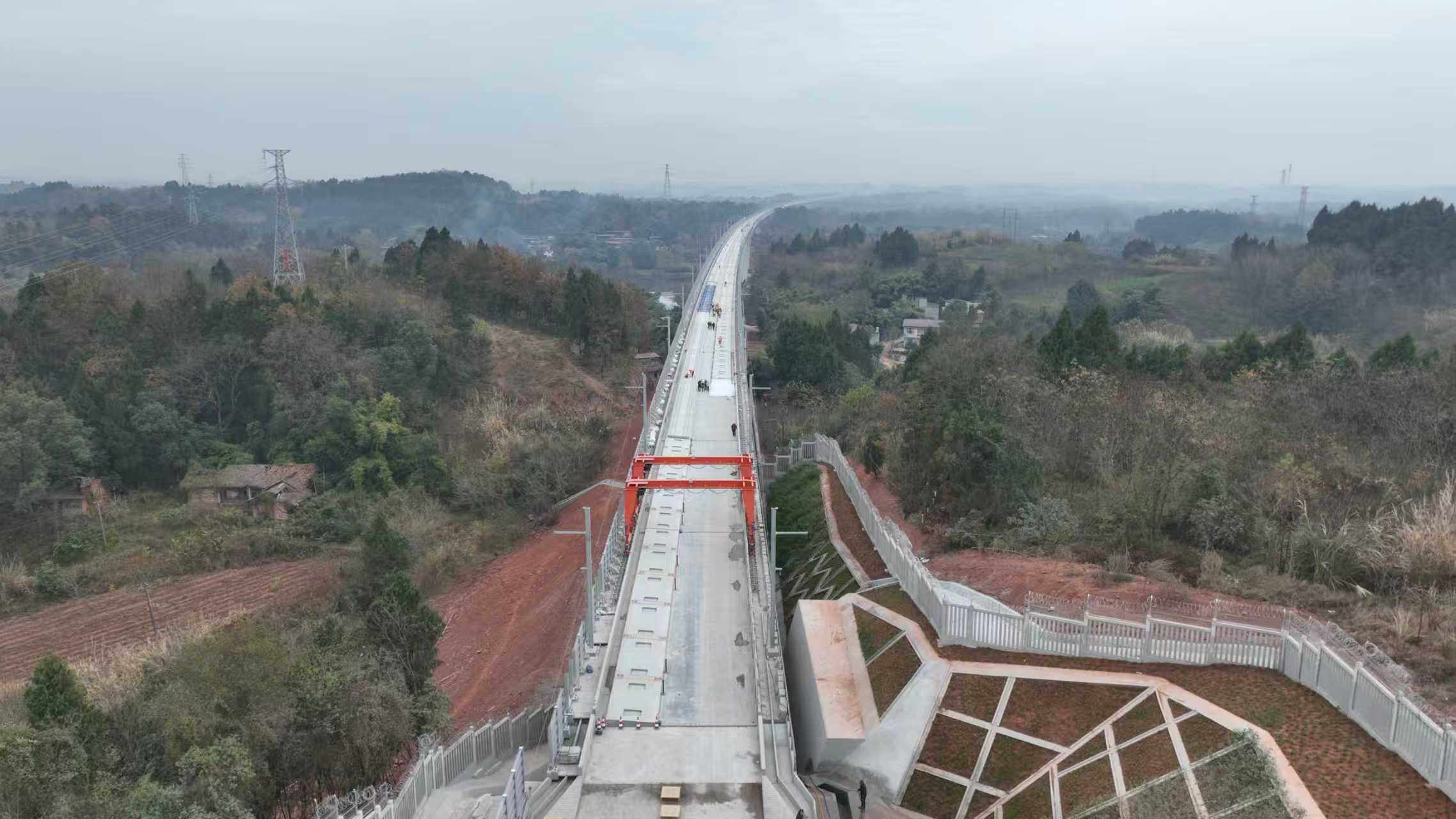 当前,成渝中线高铁全线各重难点工程正在攻坚。正在简州站至成都站区间地下掘进的蜀安隧道全长10公里,是目前国内掘进距离最长、直径最大的土压平衡盾构隧道,由“成渝号”“蜀安号”两台盾构机同步掘进,施工工艺突破多项技术创新,目前剩余500米。长约8公里的龙泉山隧道穿越复杂地形和瓦斯段落,施工难度高,目前剩余关键线路400米。重难点工程完工后,将全面进入无砟轨道大规模铺设阶段,为全线贯通奠定坚实基础。