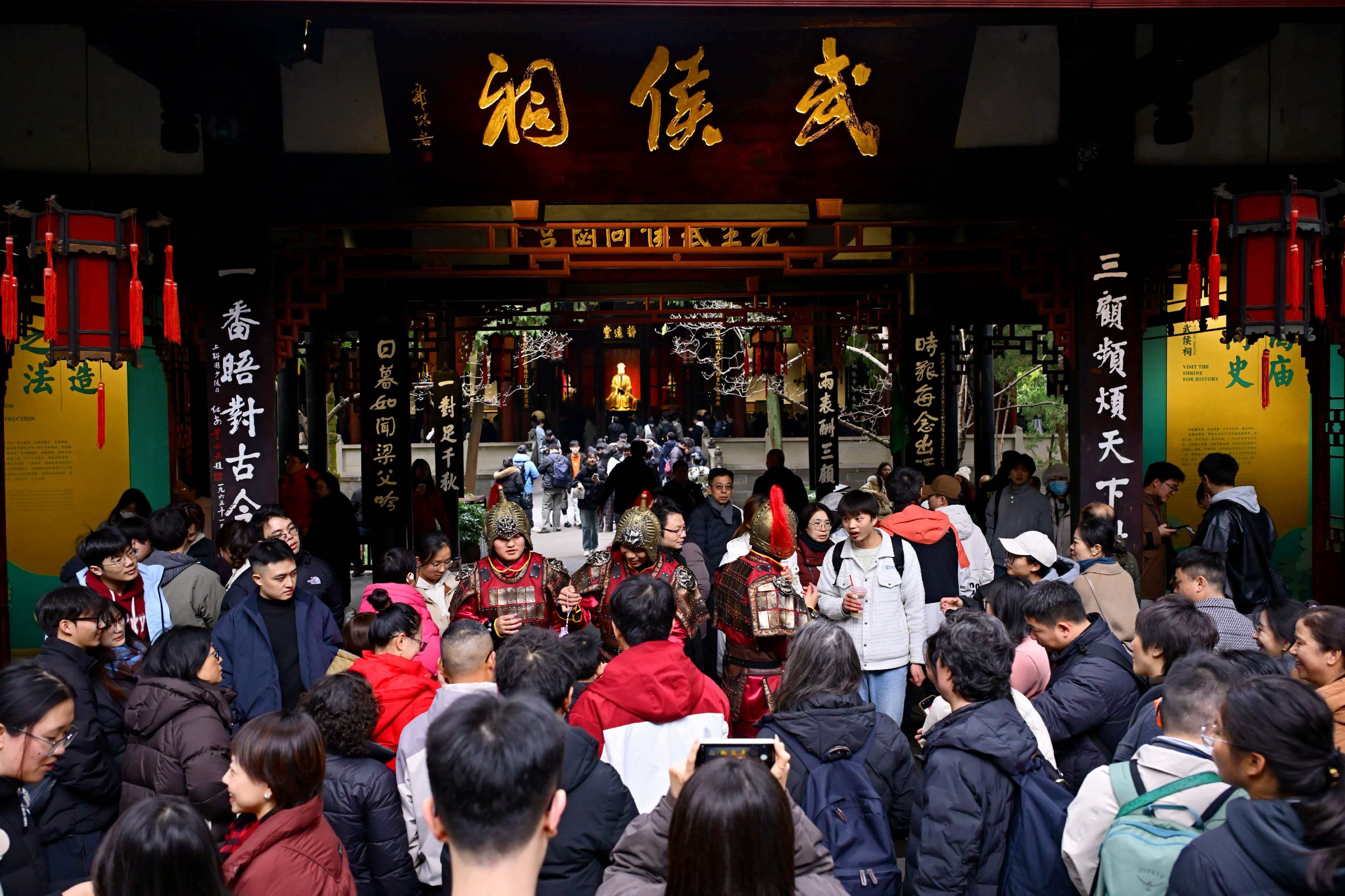 四川发布客户端消息 记者从成都武侯祠博物馆获悉,1月1日至3日,武侯祠博物馆推出“蜀汉新风华·三国贺新岁”元旦主题活动,通过场景化互动、非遗展演、科技演艺与精品展览等多维形式,为游客营造出兼具文化底蕴与节日欢愉的沉浸式体验。