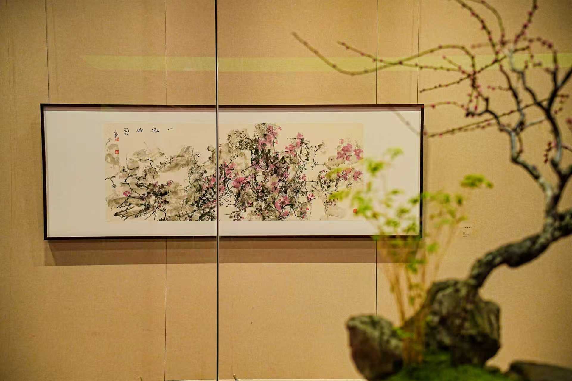梅花作为中国传统文化中坚毅不屈、品格高洁的象征,历来是文人墨客钟爱的创作母题。展览中,一幅幅水墨梅花或疏影横斜,或繁花似雪,笔墨间蕴含着宋元遗韵。配合画作的书法斗方,笔力沉着,气韵生动。
