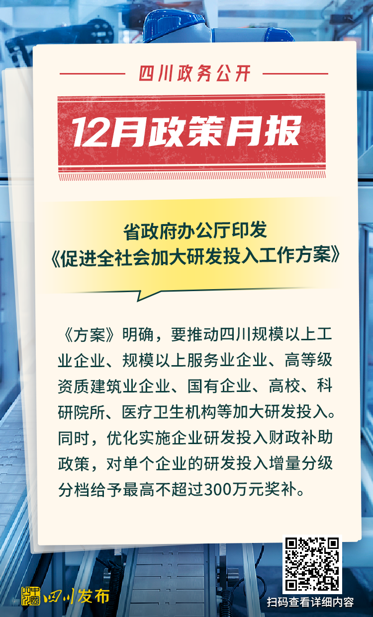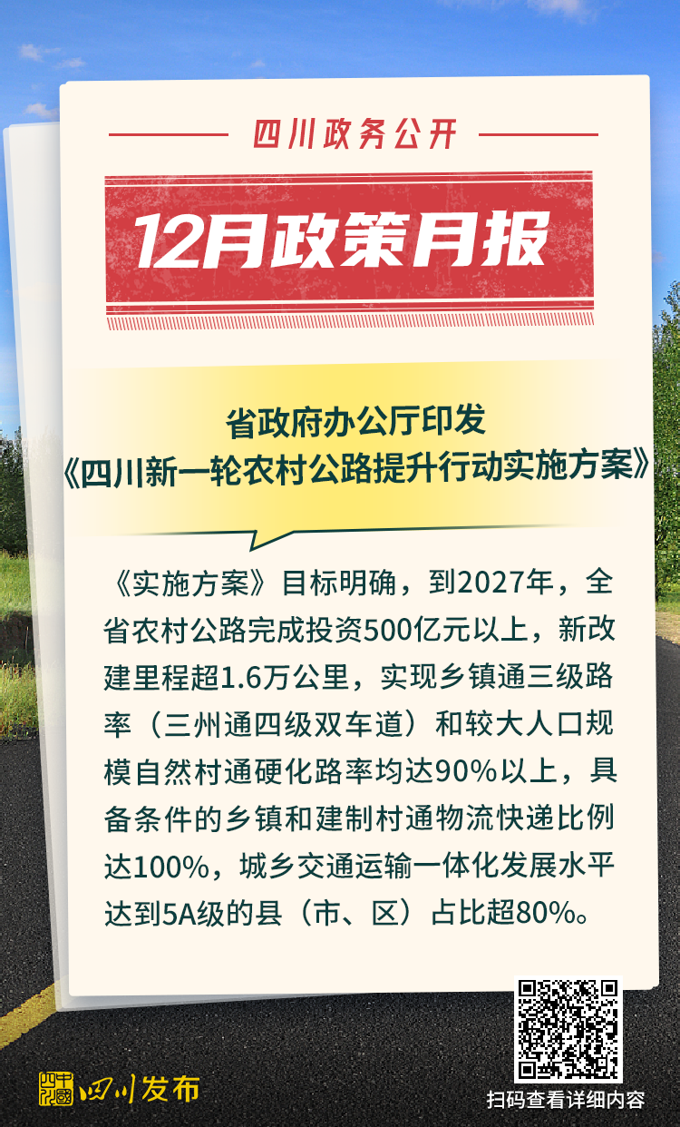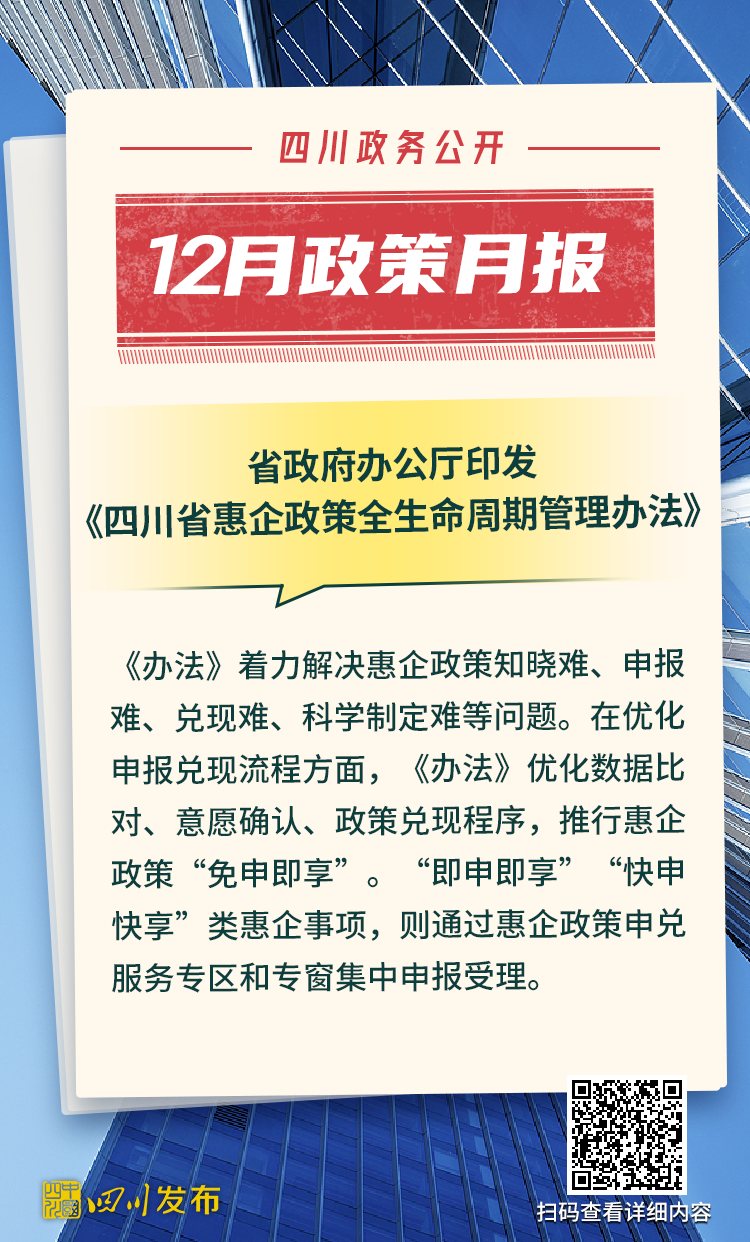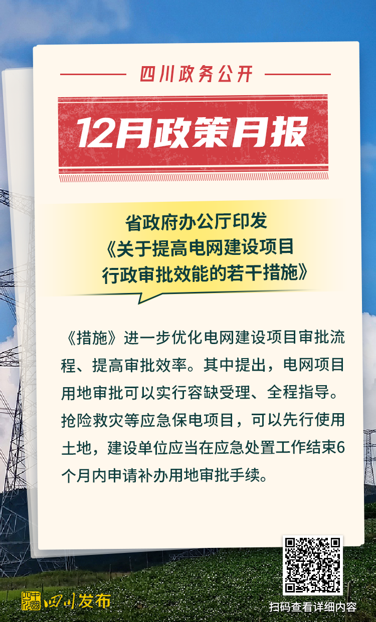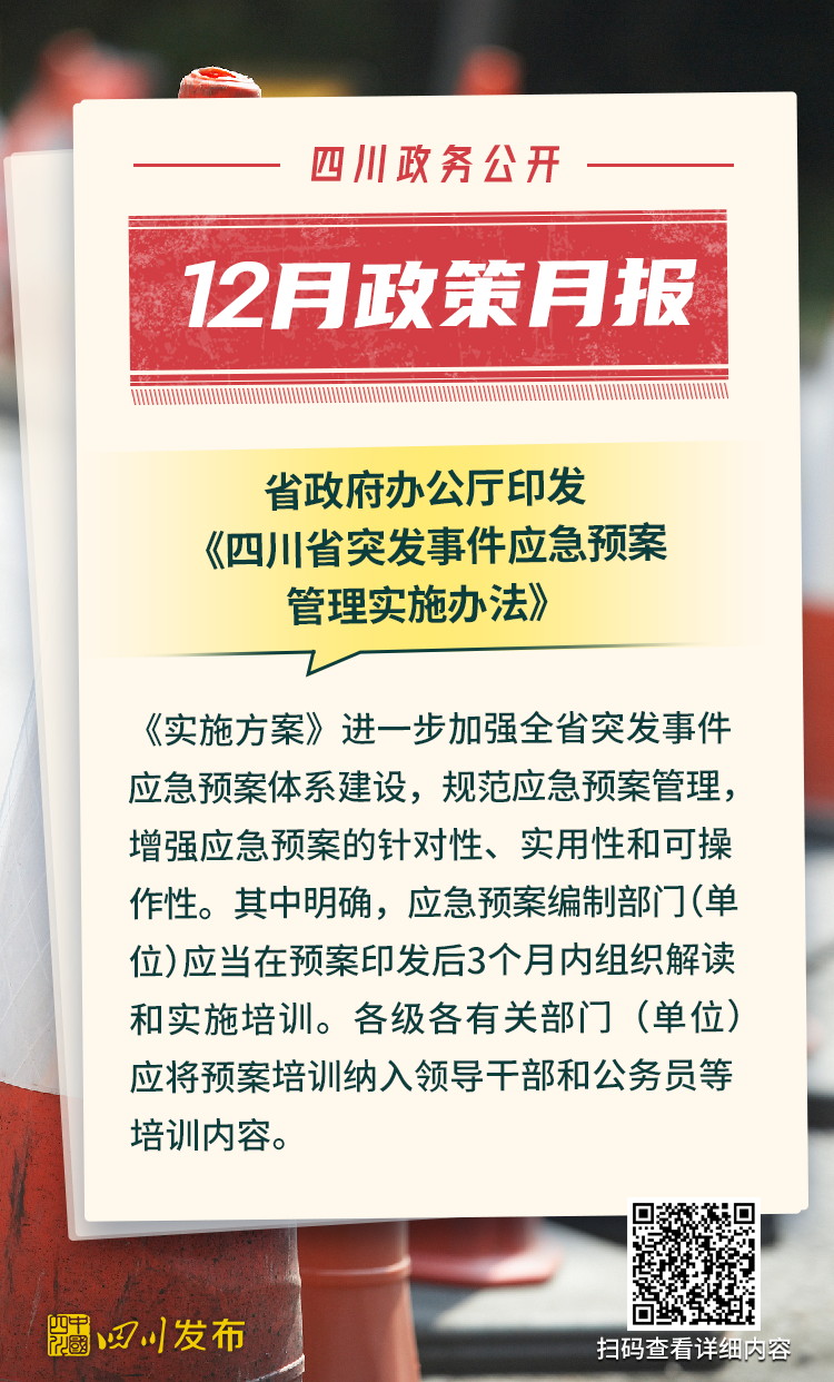四川省人民政府2025年12月出台了多项重要政策。其中,涉及12345政务服务便民热线、电网建设项目行政审批、生物医药和医疗器械产业、非农建设补充耕地指标省级收储统筹调剂、突发事件应急预案、森林草原防火命令、法律援助、公共资源交易目录、困境儿童福利、人工智能赋能新型工业化、农村公路提升行动、惠企政策全生命周期管理、饮用水水源保护区、政府购买公共文化服务、成品油流通、研发投入等重要方面。